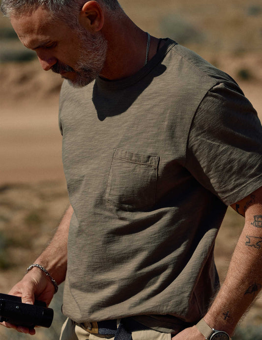 Slub Cotton Pocket Tee in Brownstone